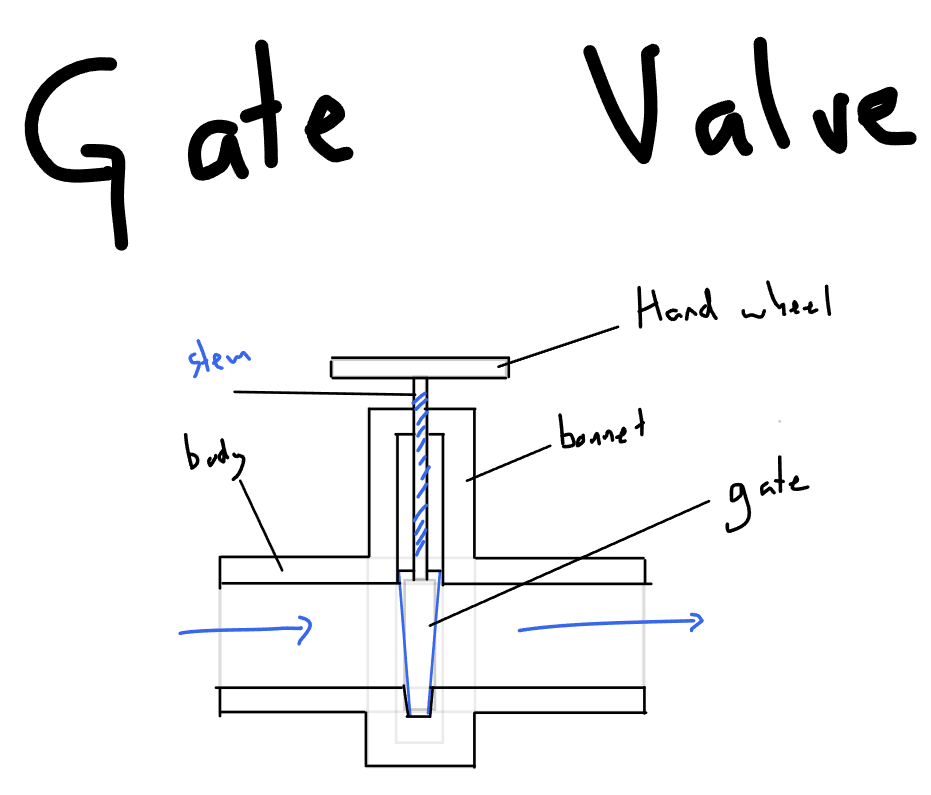 • Gate:  A movable wedge-shaped disc that slides vertically within the body to control flow.
